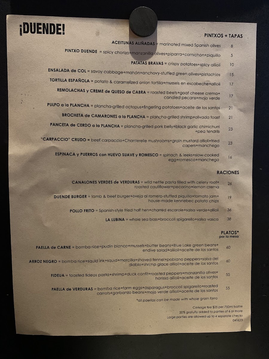 Duende specializes in authentic Spanish cuisine, featuring an enticing array of pintxos and tapas that tantalize the taste buds and celebrate the true essence of Spanish dining. The atmosphere here is warm and welcoming, with a cozy layout that invites intimate gatherings as well as lively celebrations. Whether you choose to dine downstairs amidst the bustling energy or ascend to the quieter upstairs area, the ambiance sets the stage for an extraordinary meal.