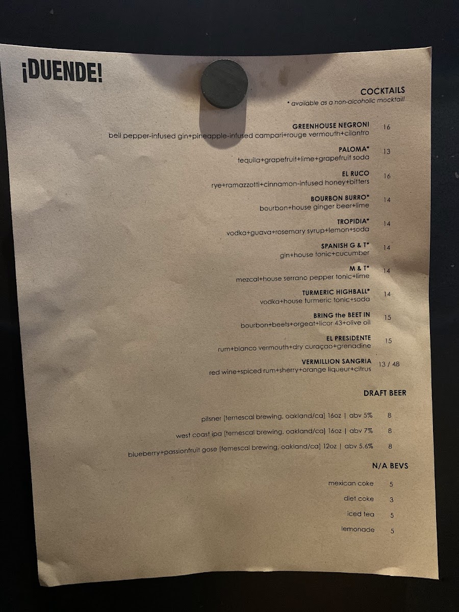 When it comes to popular dishes, Duende doesn’t hold back. Start your culinary journey with the Patatas Bravas—crispy potatoes served with a spicy aioli that perfectly balances heat and flavor. For something refreshing, you can’t miss the Ensalada De Col, renowned for its delightful combination of savoy cabbage, mahón cheese, and anchovy-stuffed green olives, all enhanced by a sprinkle of pistachios. And for those craving a hearty sandwich, the Torta De Pollo Frito is a standout, featuring spicy fried chicken nestled between housemade focaccia and accompanied by flavorful jardinièra and piquillo aioli.